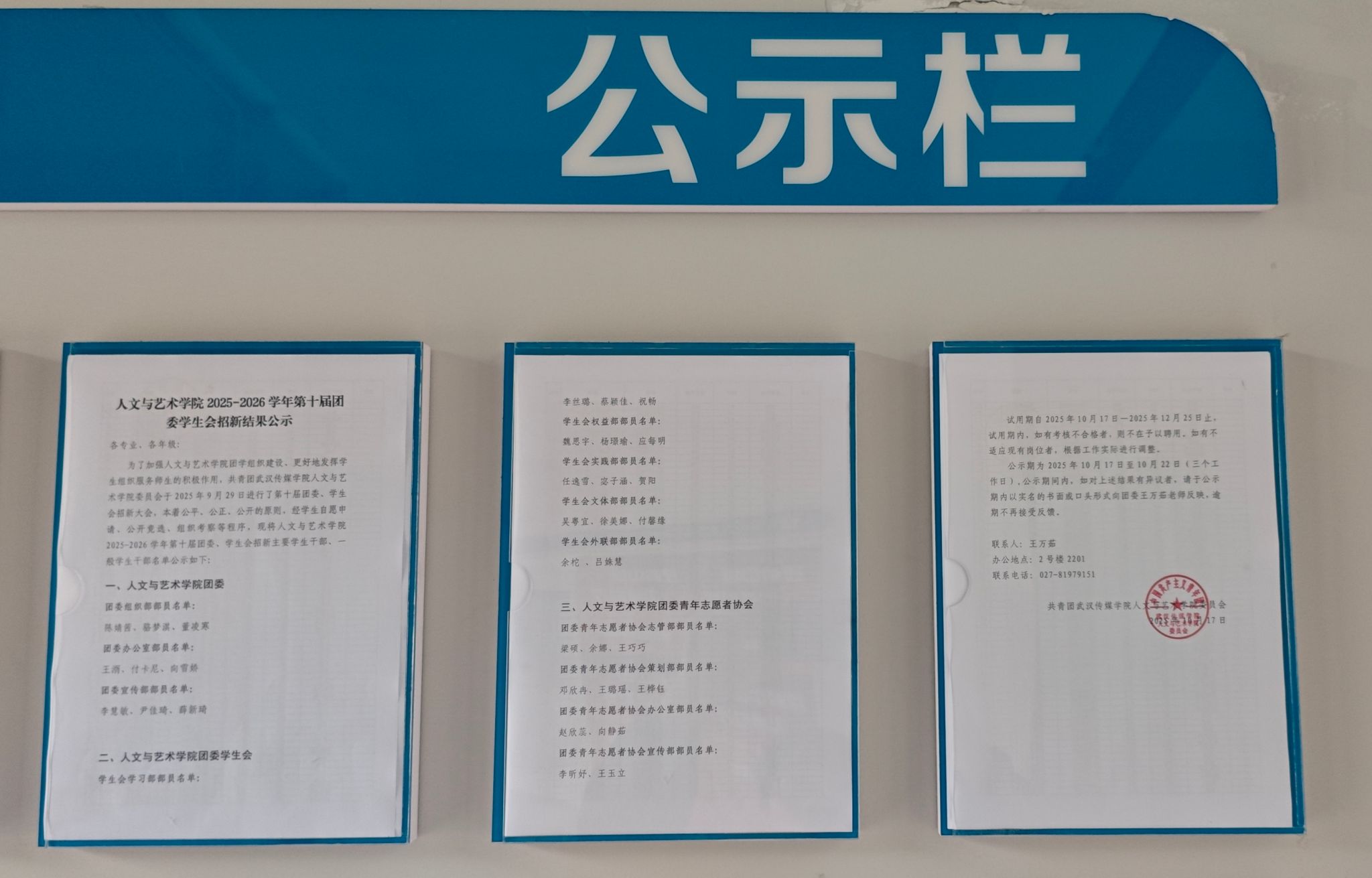 人文与艺术学院2025-2026学年第十届团委学生会招新结果公示