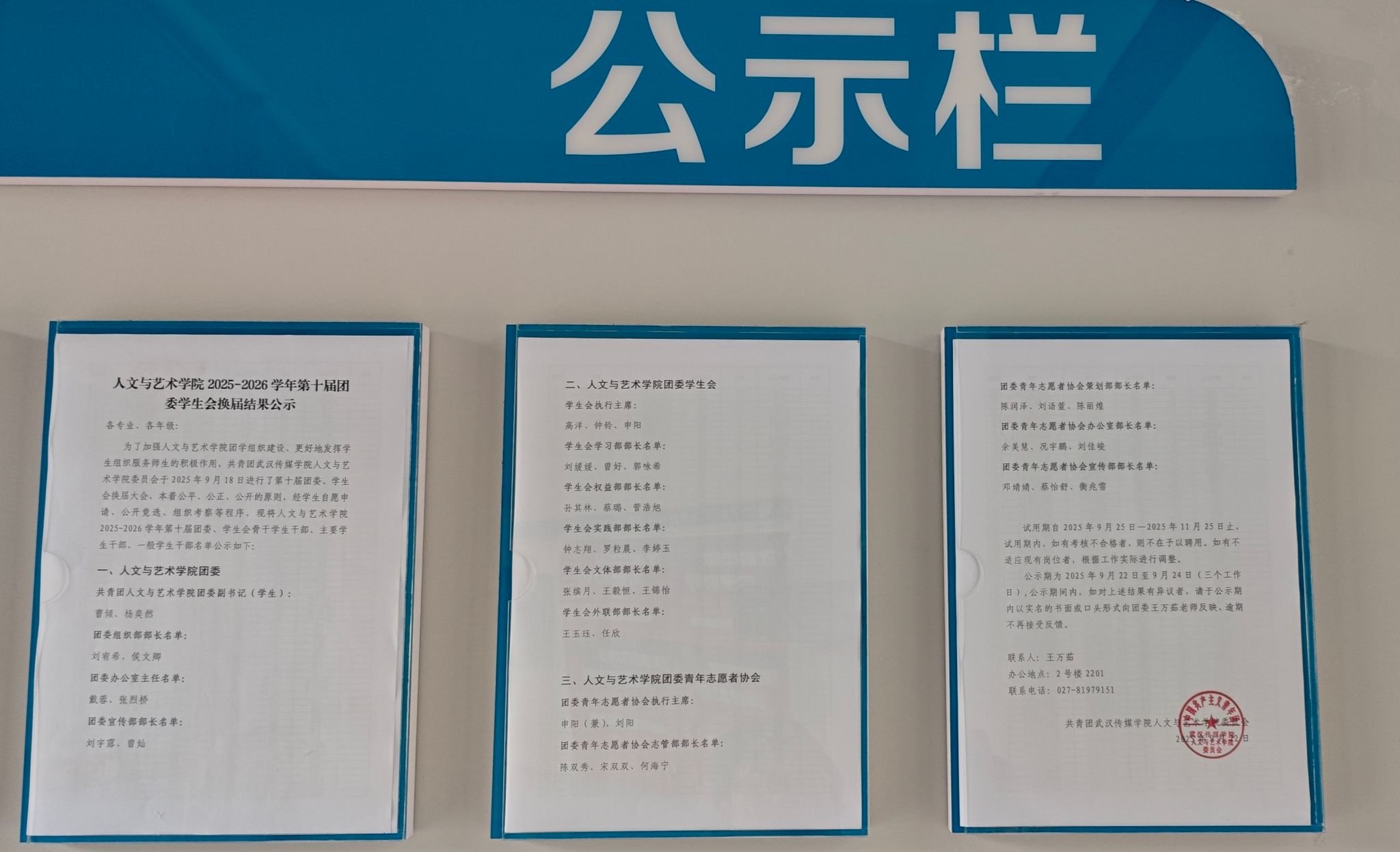 人文与艺术学院2025-2026学年第十届团委学生会换届结果公示