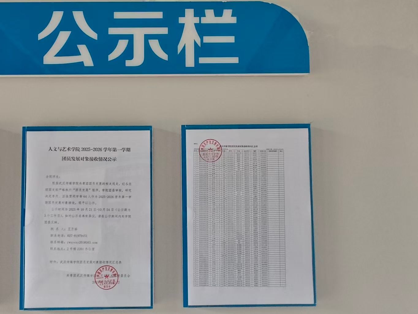 人文与艺术学院2025-2026学年第一学期团员发展对象接收情况公示