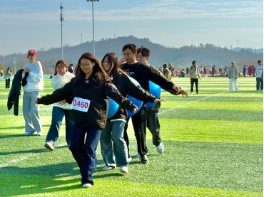 “二龙戏珠”项目,是对参赛者自身的灵敏度与配合度的考验。当两人并肩而立,用身体协作传递气球时,每一次脚步的同步、每一回手臂的轻抬,都是一场“不能出错”的默契考验。这恰恰是人文与艺术学院合作共赢理念的生动体现。