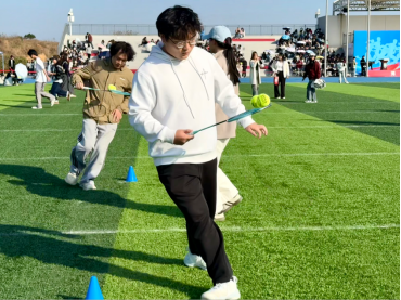 “四平八稳”的球拍上,滚着专注的光。队员们攥着球拍小跑的身影里,黄色小球的起伏成了全场的焦点——有人弓着腰紧盯球面,有人小碎步调整重心,每一次稳稳接住的瞬间,都是专注力与反应力的胜利。这场“慢下来的较量”里,少年们把“稳”字,踩成了赛场的另一种热烈。