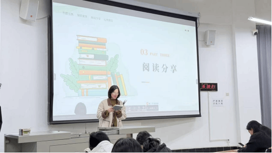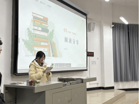 活动的第三环节“阅读分享”则由各小组长代表上台,声情并茂地推荐自己换得的书籍,并选读其中感悟至深的精彩段落。他们分享选书理由与阅读期待,真诚的表达引发了在场同学的深深共鸣。