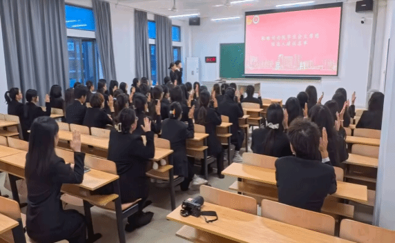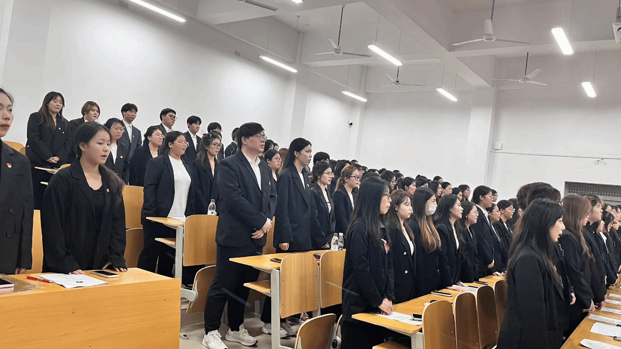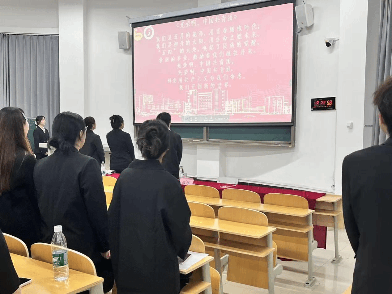 总监票人现场公布选举结果,高洋、申阳、钟铃成功当选学生会第三届主席团成员。随后,全体参会人员起身肃立,共同高唱《光荣啊,中国共青团》。