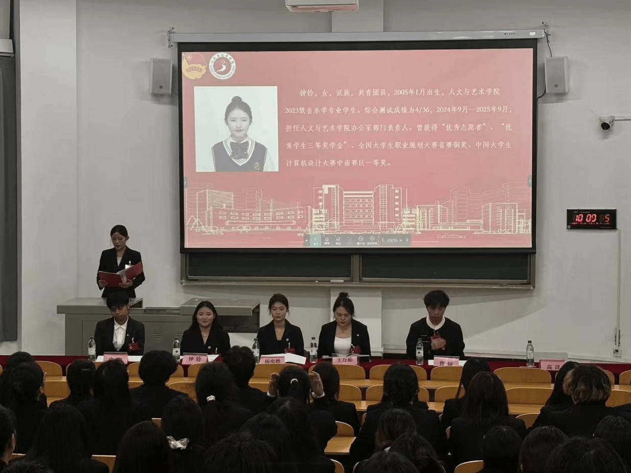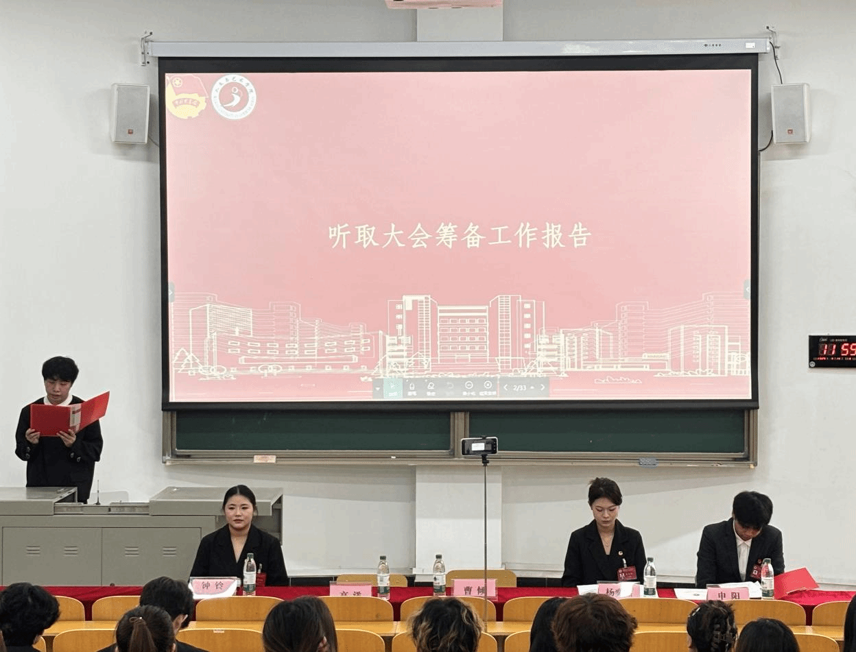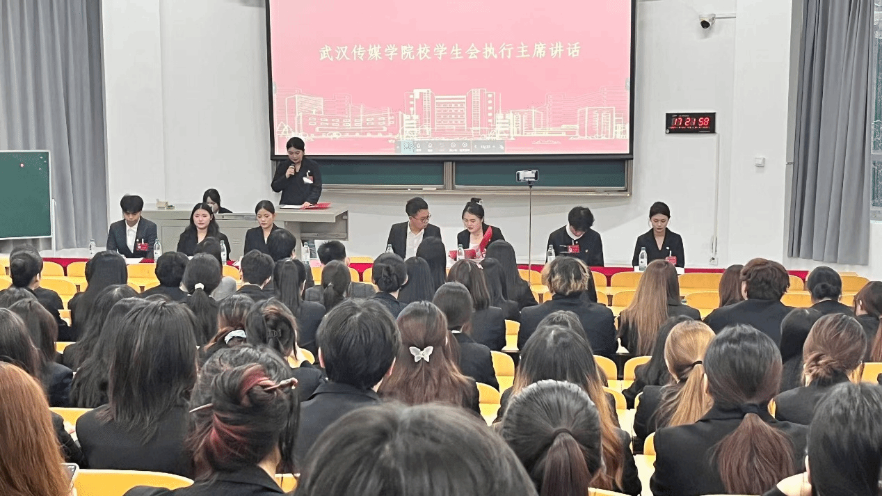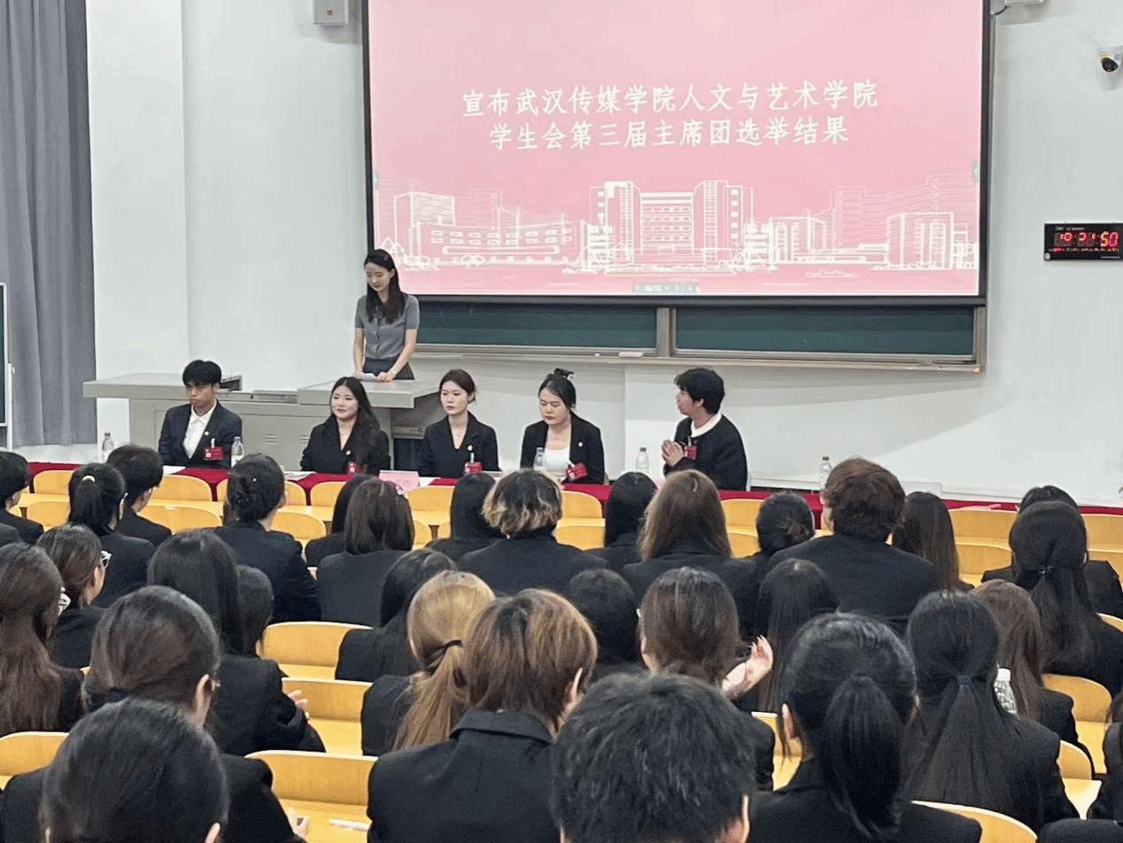 最后,全体代表听取了武汉传媒学院人文与艺术学院学生会工作报告。报告对过往阶段学生会的工作进行了全面复盘,详细阐述了其在思想价值引领、校园文化培育、学生权益护航、志愿服务推进等领域的实践探索与亮眼成果。