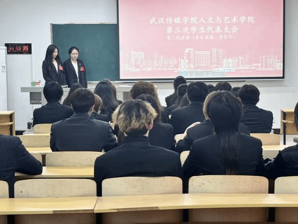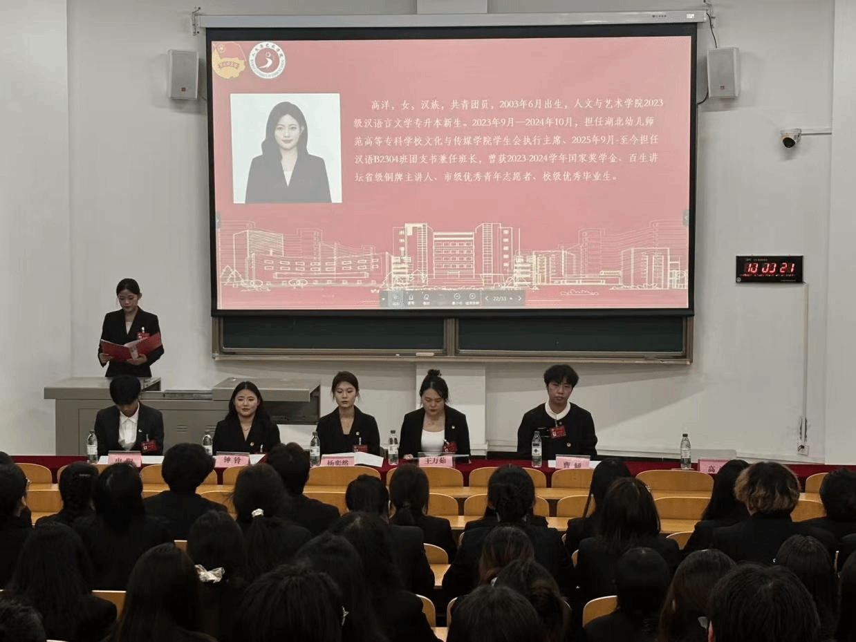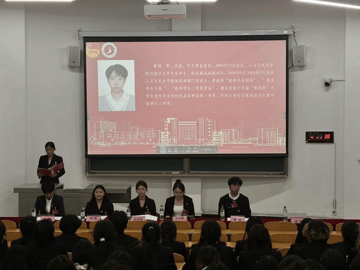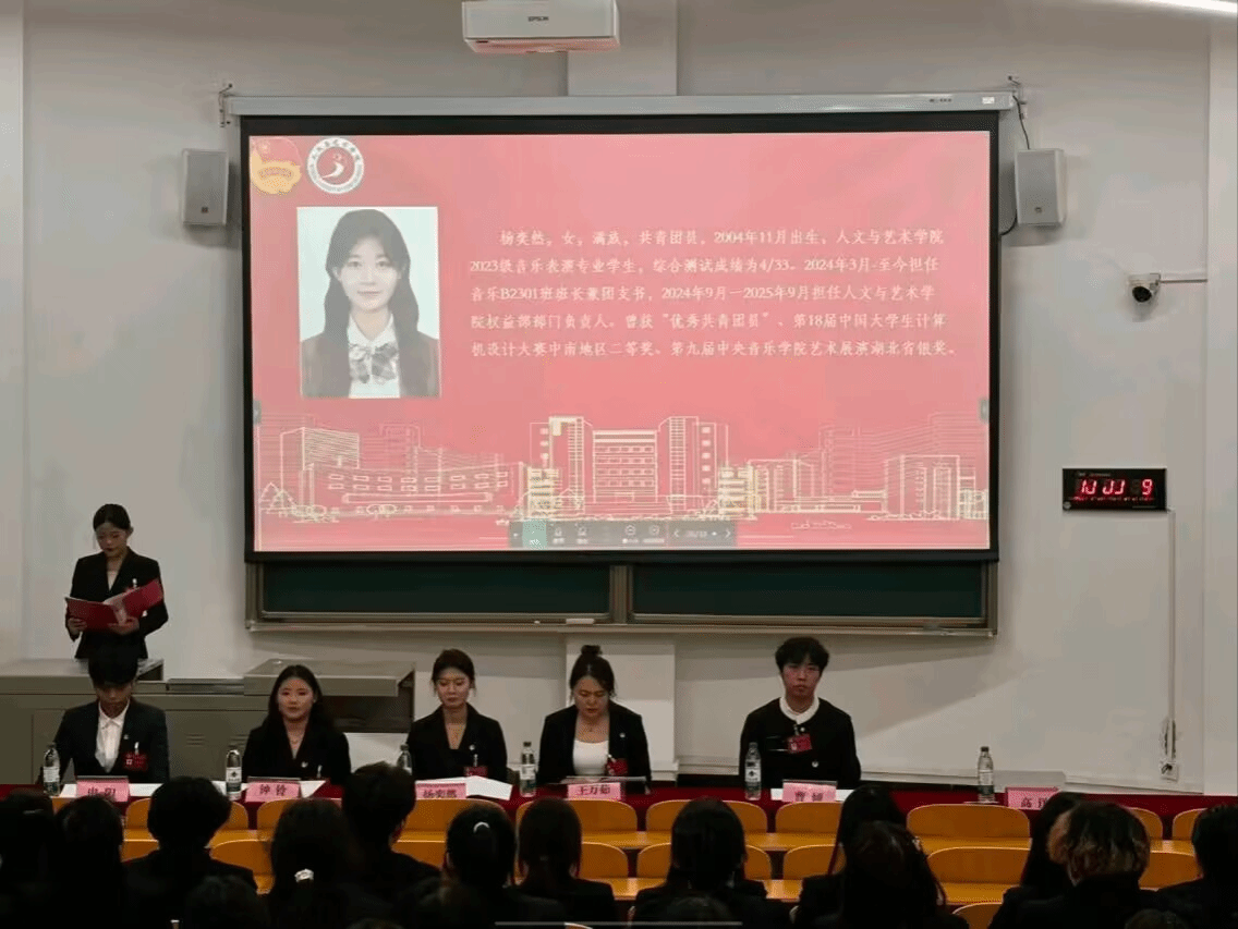 2025年9月26日,武汉传媒学院人文与艺术学院第三次学生代表大会在2号教学楼2212教室和各会议室顺利召开。此次大会由人文与艺术学院党总支部书记吴斌、学院团委书记、学院组织员和各级辅导员代表、学院第十届主席团成员以及各年级学生代表参会,特别邀请校学生会执行主席管越参加第一次全体会议。