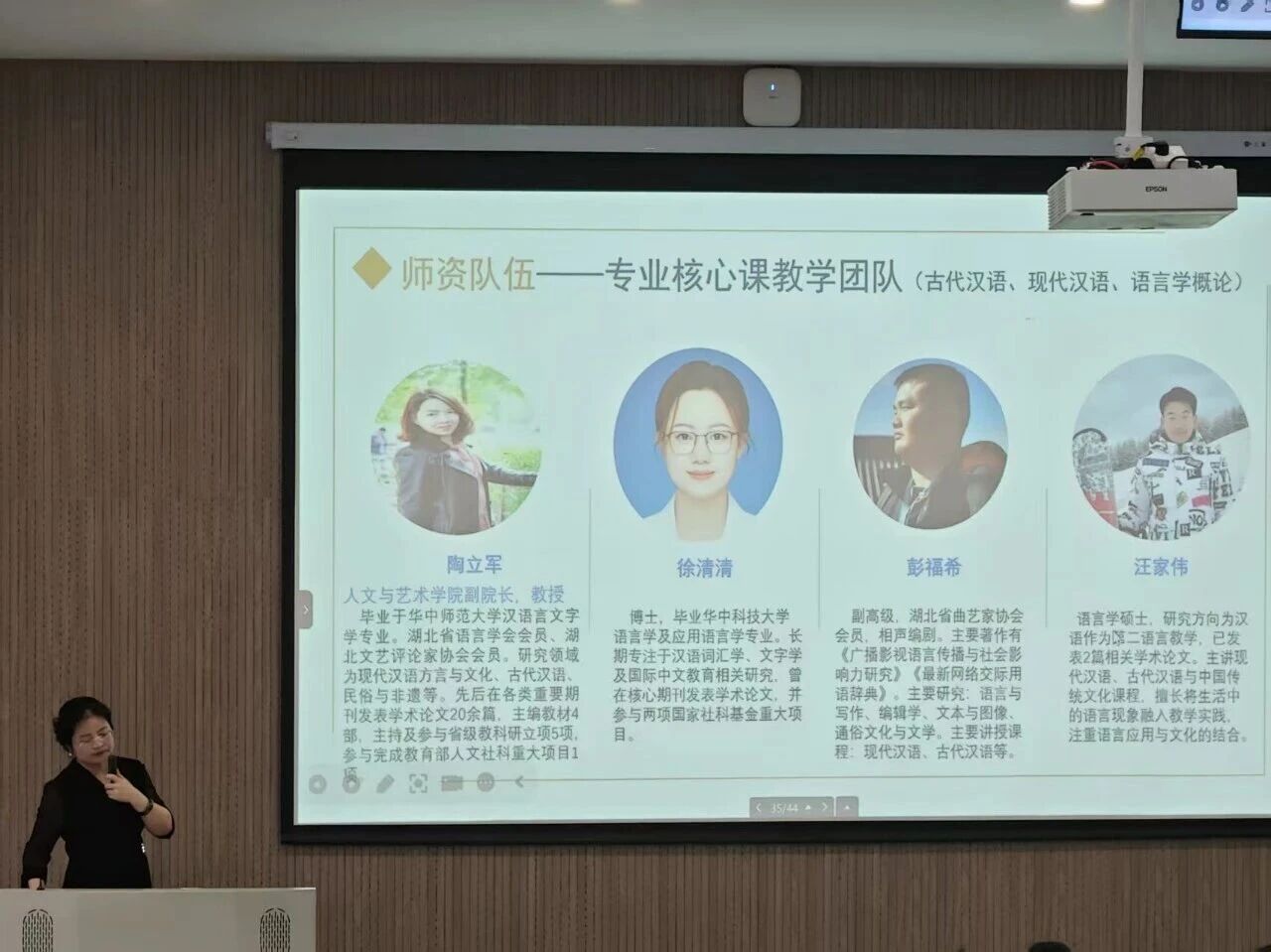 宣讲会上还介绍了教研室发展及教师团队,充分展现了汉语言文学专业的雄厚师资力量。中文教研室拥有“创意写作”“民俗田野调查”和“周游《诗经》世界虚拟仿真实验” 等多项省级一流课程,多项校级一流课程和校级思政示范课,并荣获湖北高校省级优秀基层教学组织。汉语言文学专业更有一批专业扎实、行业经验丰富的教师团队,他们在年龄上覆盖老、中、青三代,涉及出版、教育、创作等多个领域。这些优秀而多元的师资力量将为汉语言文学专业的学生提供高质量的教学指导,助力学生在学术和职业发展上取得优异成绩。