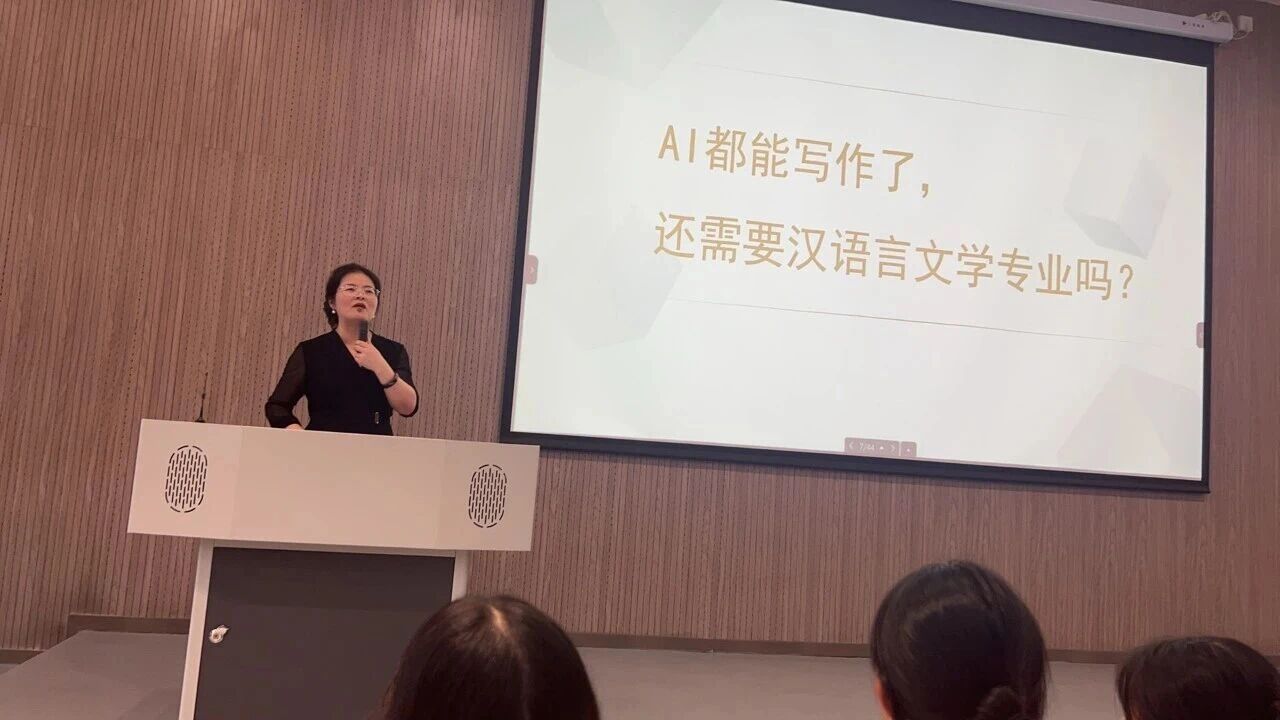 在专业介绍环节,专业带头人张艳彬老师以“锻造一把专属于你的万能钥匙”为主题,深入解读了汉语言文学专业的特色与前景。张老师指出,尽管社会上常将汉语言文学与考公考编紧密关联,但该专业的内涵远不止于此,其未来发展依然广阔且充满无限可能。面对专业热度高、同龄竞争激烈以及AI技术带来的挑战,张老师鼓励新生积极把握机遇,夯实专业基础,提升综合素养。