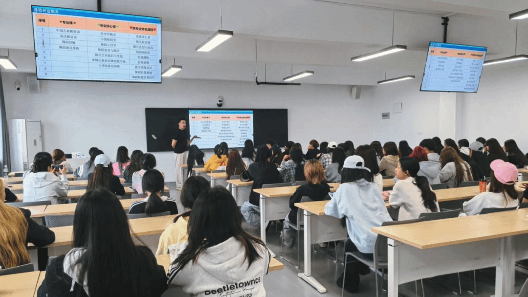 舞蹈教研室主任高杨文源老师以“舞蹈学专属航班”为主题,生动且富有深意地解读了舞蹈学专业的人才培养方案。他将四年的学业旅程形象地分为“初始巡航—持续上升—平稳前行—安全着陆”四个阶段,并详细阐述了各学年的课程安排、能力目标与实践要求。通过这一清晰的规划,新生们不仅对未来的学习生活有了更明确的认识,也为自己的学术航程设定了方向。