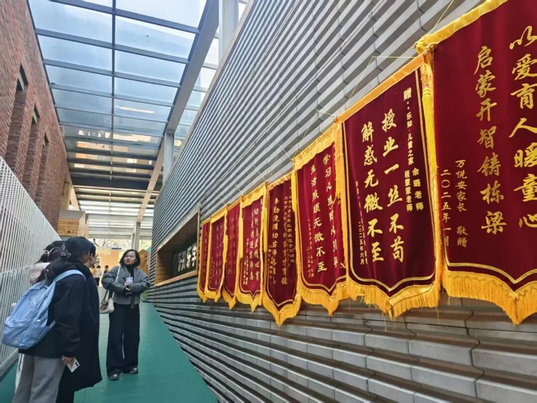 在参观的途中,揭老师以一面面充满温情的锦旗展示了信任乐知的各位家长对乐知寄予的厚望,锦旗不仅展示了乐知教师的认真负责,更加显现了企业管理制度的一丝不苟。
