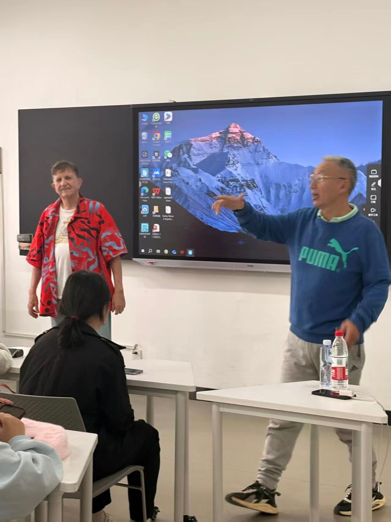“朝辞白帝彩云间,千里江陵一日还”——菲利普先生用英文流畅背诵《早发白帝城》,还搭配着肢体语言为同学们讲述“两岸猿声啼不住”,教室突然静了半秒,随即才惊觉他对中国文化的痴迷:不仅能细数《西游记》里的师徒人物,连师徒人物性格都能倒背如流。唐诗的韵律、名著的故事,在他的讲述里成了无国界的乐趣。