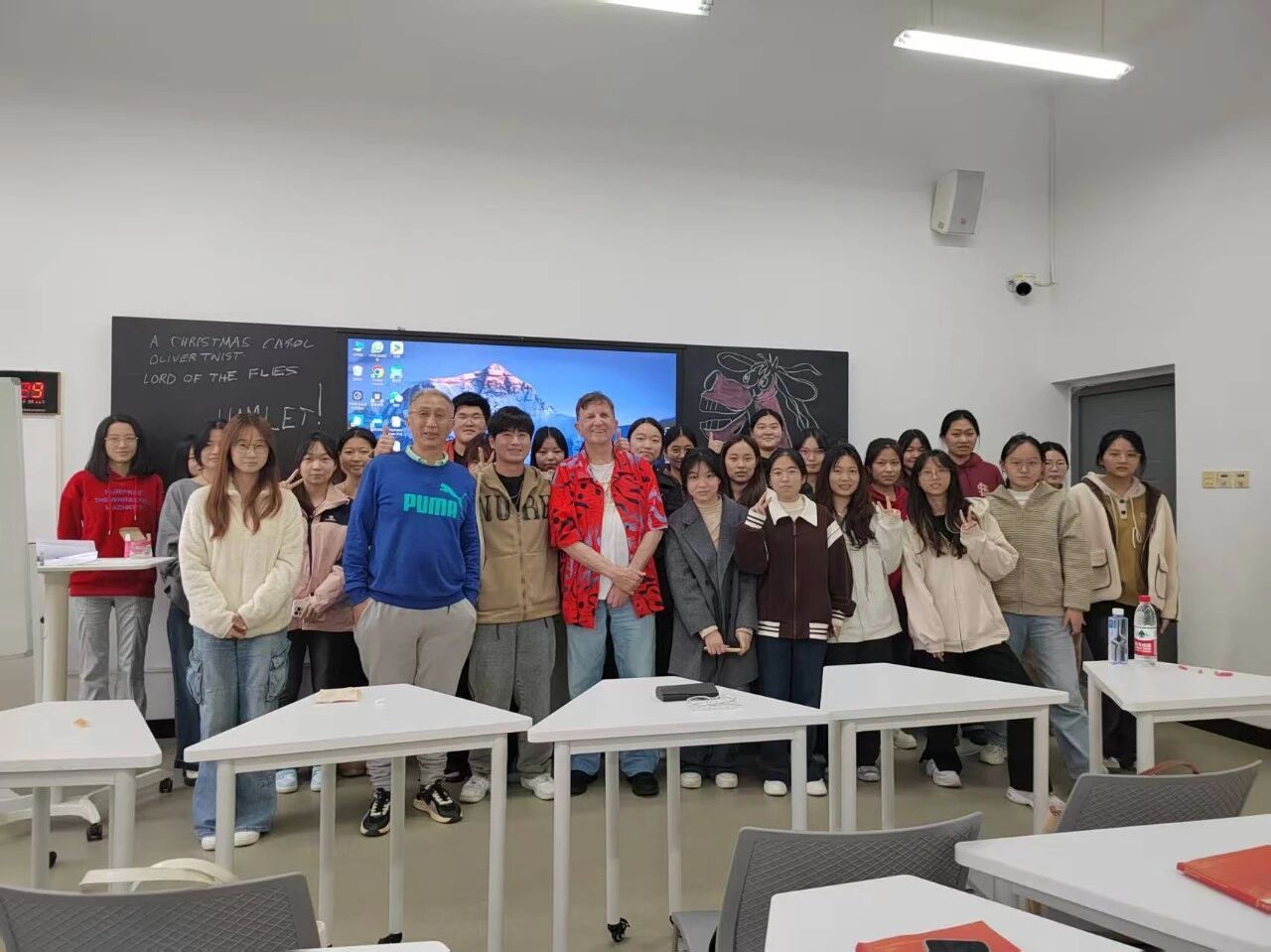 当菲利普先生与同学们一同站在讲台前合影时,近距离的接触让大家明白:文化从不是隔着屏幕的遥远的风景或“远方”,而是“他画一笔、我接一句”的鲜活互动。这场澳式热忱与中式诗画的相遇,是一堂别开生面的英语课,更是裹着暖意的文化之约——原来共鸣,从来不用等翻译。