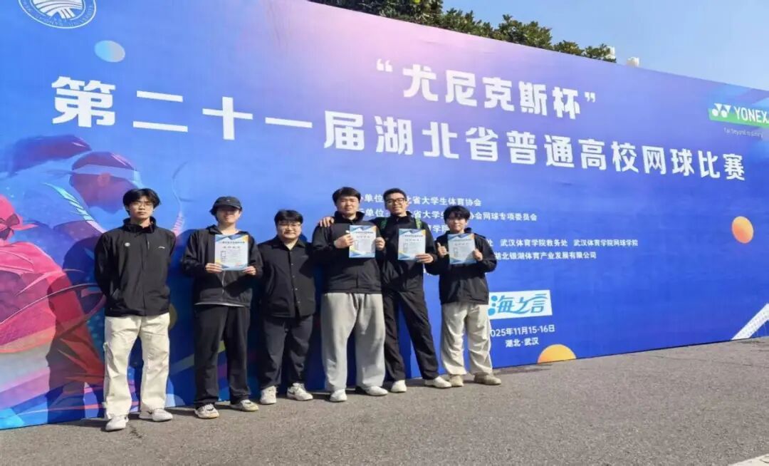 2025年11月15日至16日,第二十一届湖北省普通高校网球比赛在武汉体育学院顺利举行并取得圆满结束。我校参赛选手努力奋战,取得佳绩。男队历经多轮激烈比拼,披荆斩棘,获得全省第五名的好成绩。女队也受益匪浅,展现了昂扬向上,永不放弃的生命力。