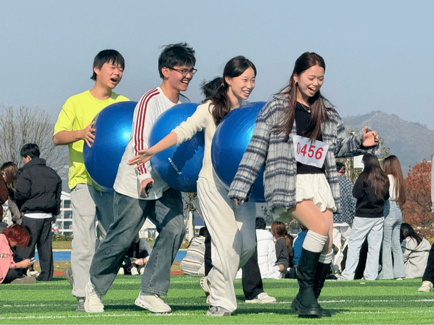 “二龙戏珠”项目,是对参赛者自身的灵敏度与配合度的考验。当两人并肩而立,用身体协作传递气球时,每一次脚步的同步、每一回手臂的轻抬,都是一场“不能出错”的默契考验。这恰恰是人文与艺术学院合作共赢理念的生动体现。