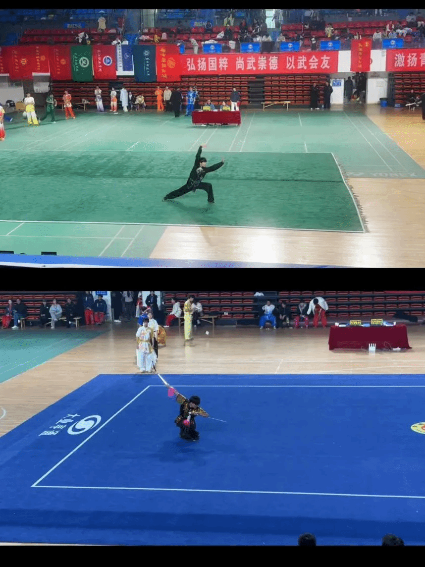 赛场上,我校参赛学子身着劲装,精神抖擞,伴随着悠扬或激昂的旋律,将拳法的刚劲有力、器械的灵动洒脱展现得淋漓尽致。赢得了评委的一致认可与现场观众的阵阵掌声。
