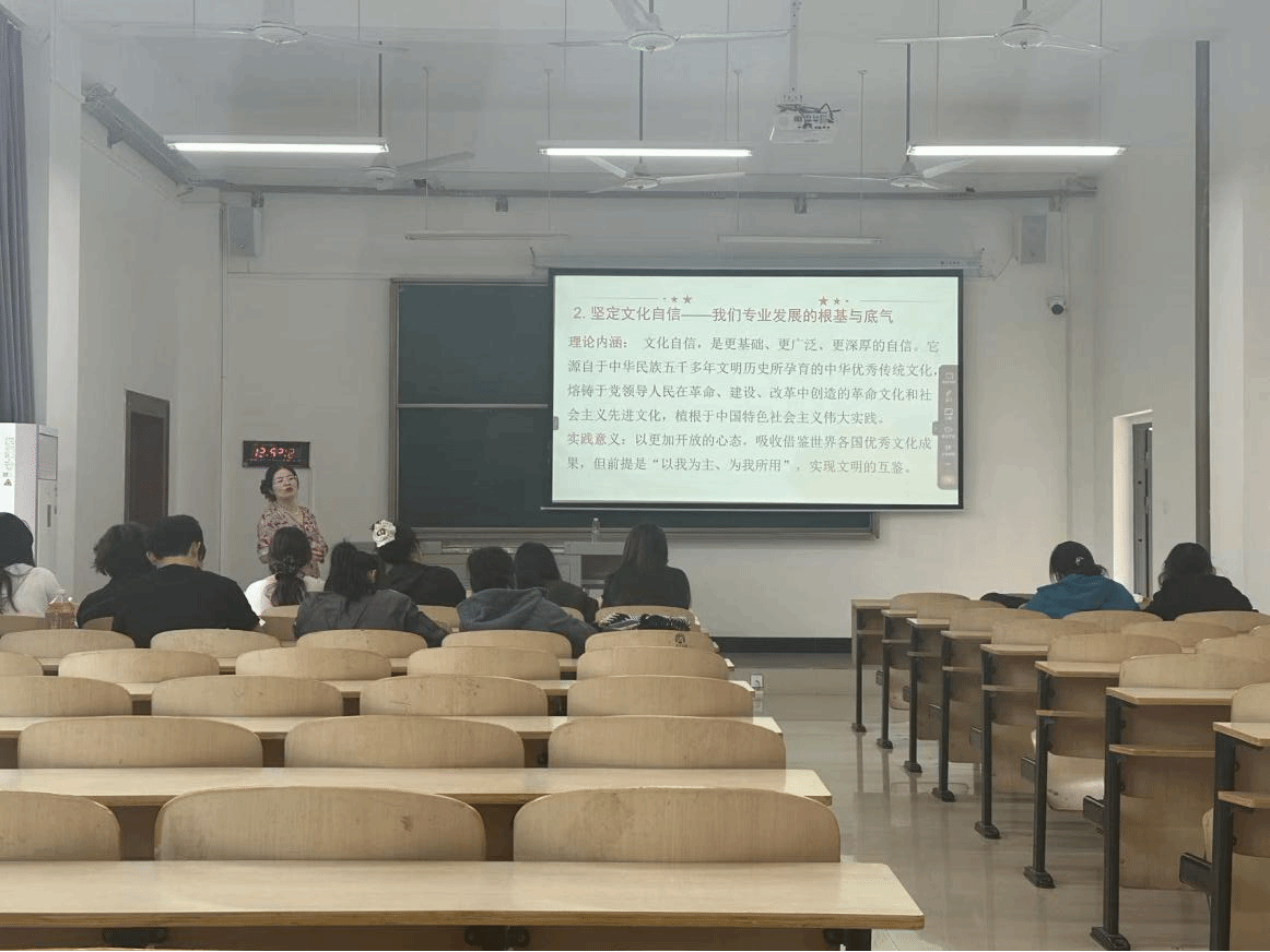 课上,张艳彬老师首先系统阐释了党的创新理论的核心要义,并从三个维度层层递进、深入剖析。其一,强调“以人民为中心”是创作的“根”与“魂”,张老师从历史、价值与实践三个维度展开论述,指出创作当以“扎根人民、服务人民、引领人民”为根本遵循;其二,阐明“坚定文化自信”是专业发展的根基与底气,张老师结合理论与实践两方面,强调文化自信并非故步自封,而是赋予我们从容开放的胸襟,实践中应秉持“以我为主、为我所用”的原则,积极吸纳优秀文明成果,在交流互鉴中提升自我,从而更有效地推动党的创新理论在专业领域的生动实践与创造性转化;其三,提出“坚持守正创新”是艺术探索的原则与方法,其中“守正”为前提,“创新”为动力。