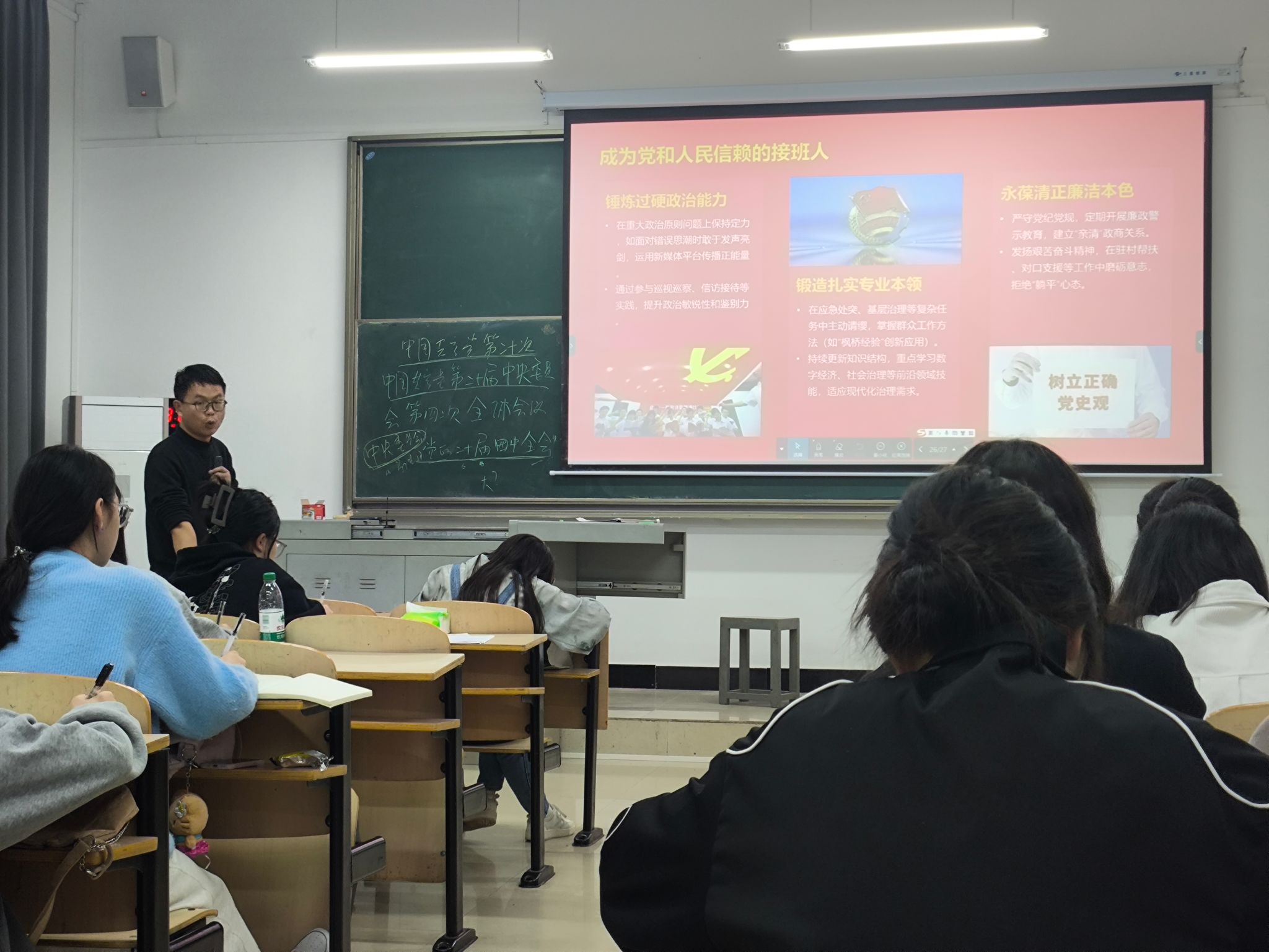 为帮助积极分子夯实理论基础、提升政治能力,吴老师进一步提出“加强理论学习”与“成为党和人民信赖的接班人”的具体路径,包括系统学习马克思主义理论、建立长效学习机制、锤炼扎实专业本领、永葆清正廉洁本色等。他强调,每一位积极分子都应当树立正确党史观,努力成长为有理想、敢担当、能吃苦、肯奋斗的时代新人。
