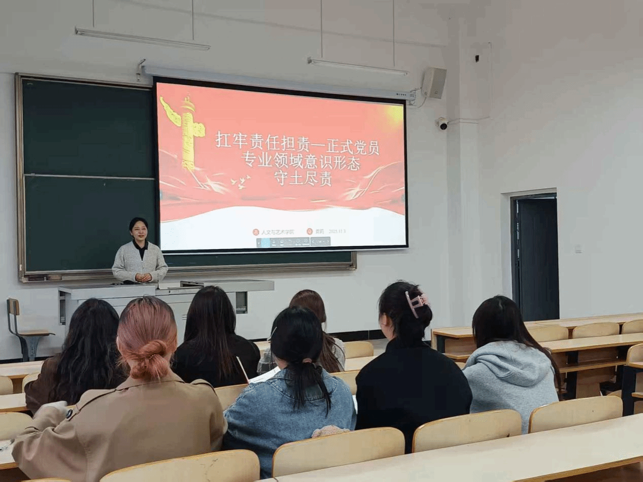为加强正式党员对其专业领域意识形态的责任认知,提升其党性修养,同时增强对错误思潮的防范意识,11月3日17:10,人文与艺术学院分党校在2209教室开展了2025年秋季正式党员培训班党课第一讲。此次党课由人文与艺术学院龚莉老师授课。