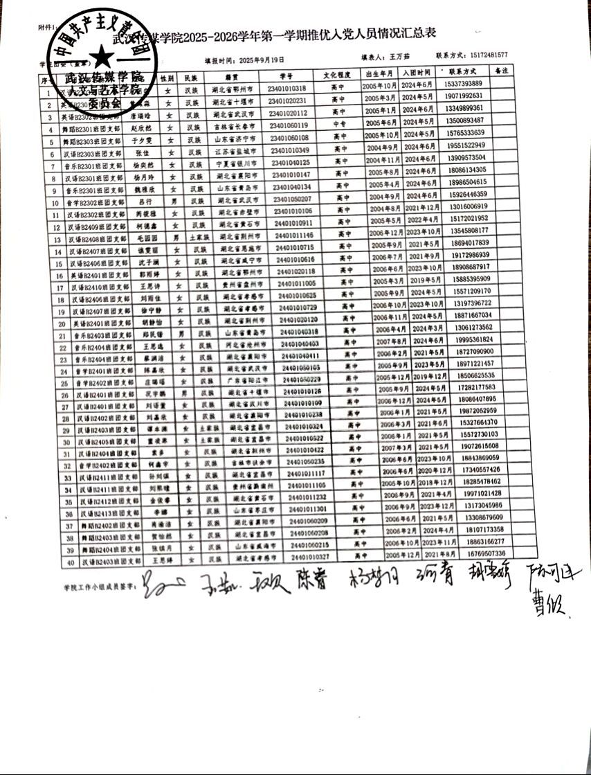 人文与艺术学院2025-2026学年第一学期共青团推优入党工作情况公示