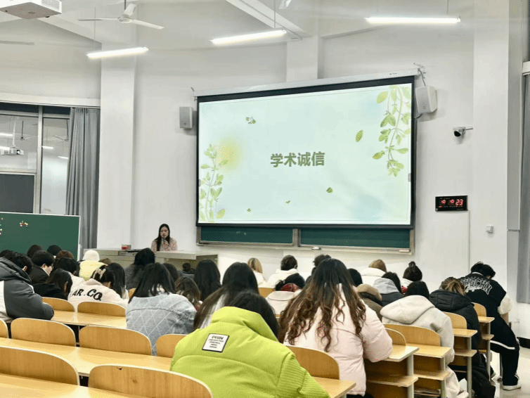 活动过程中,全体学生始终保持着高度的专注度,大家认真聆听、细心记录,眼神中满是认同与思考。当老师分享诚信典型案例时,同学们轻声交流感悟;当谈及失信的严重后果时,现场肃静无声,足见大家对主题内容的重视。整场活动氛围庄重而热烈,没有喧哗与躁动,只有思想的碰撞与价值观的共鸣。老师们的宣讲既有理论高度,又有现实温度,学生们的认真投入让诚信理念真正入脑入心,不仅让活动达到了预期的教育效果,更在学院内营造了 “崇尚诚信、践行诚信” 的浓厚氛围。