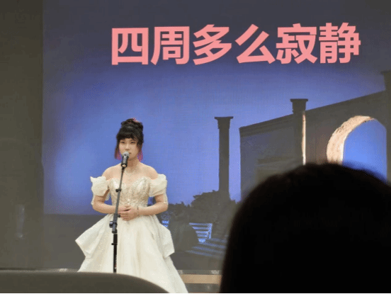 王泽凡同学演唱的是《敕勒歌》。他嗓音清亮辽阔,自带草原的苍劲与豪迈,能精准拿捏这首北朝民歌的雄浑气韵。演唱时,他以沉稳台风将苍茫草原、悠悠天地的意境娓娓道来,字句间满是感染力。他的演绎不仅是旋律的呈现,更是对古老歌谣的生动诠释,他在舞台上绽放独特光彩,收获满堂喝彩。