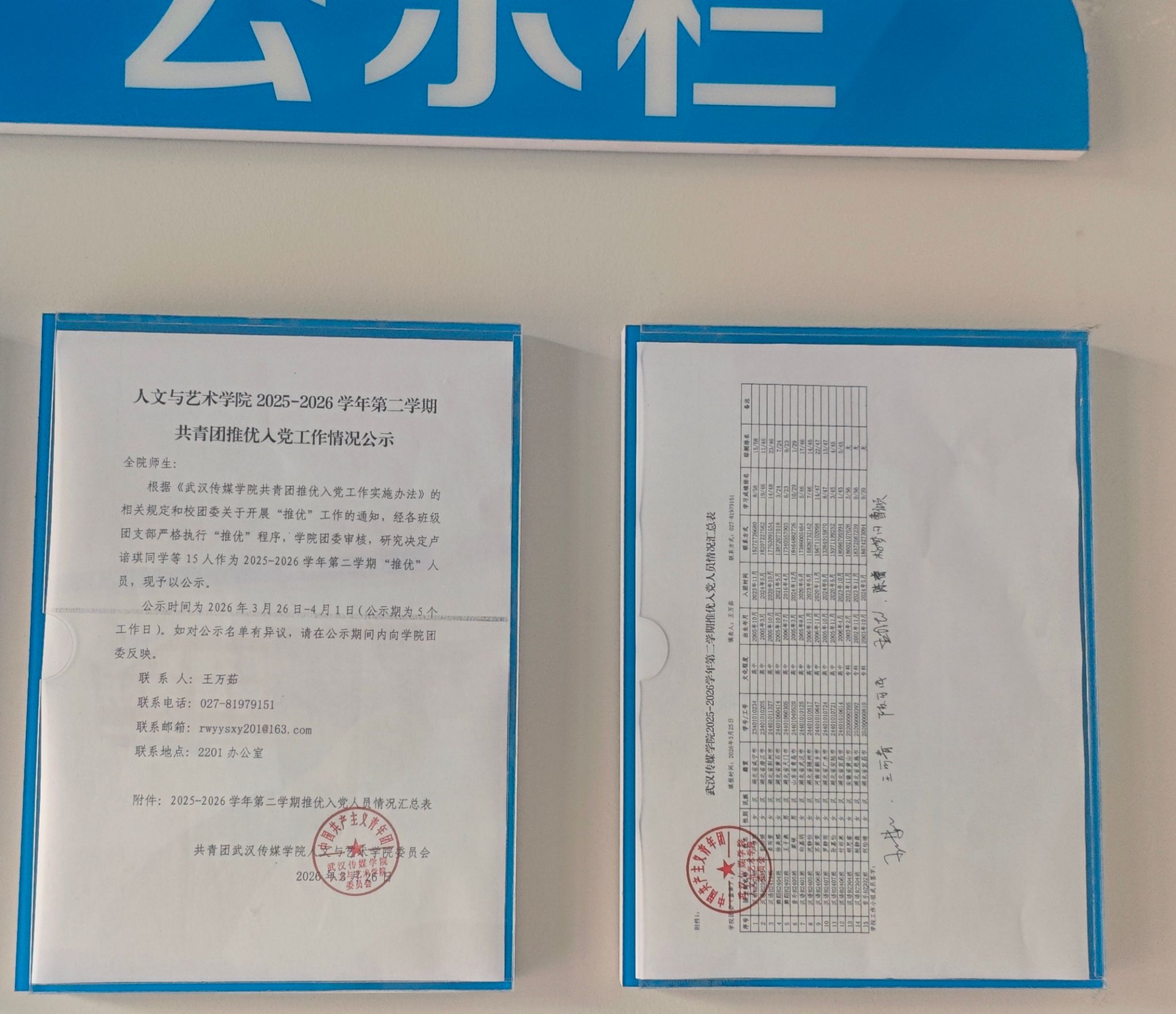 人文与艺术学院2025-2026学年第二学期共青团推优入党工作情况公示