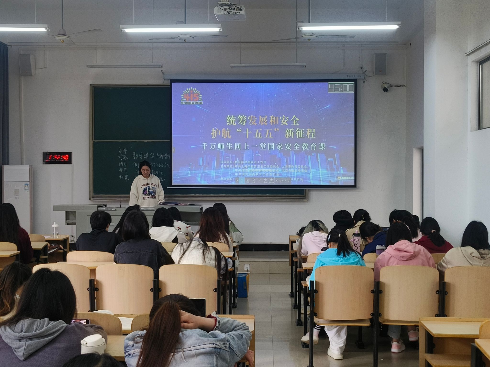在辅导员的精心组织下,我院学子以班级为单位,准时守候在屏幕前。这堂特殊的公开课,打破了传统课堂的物理边界,将全国各地的高校师生紧紧连结在一起。直播课上,权威专家通过生动详实的案例、深入浅出的讲解,为同学们全景式地展现了新时代国家安全面临的复杂形势与艰巨任务。从传统的政治安全、军事安全,到非传统的网络安全、数据安全、生物安全,一个个触目惊心的真实案例,让同学们深刻认识到:国家安全不仅是“国之大者”,更是触手可及的“责之重者”。