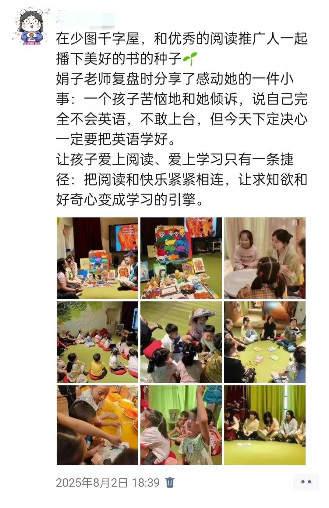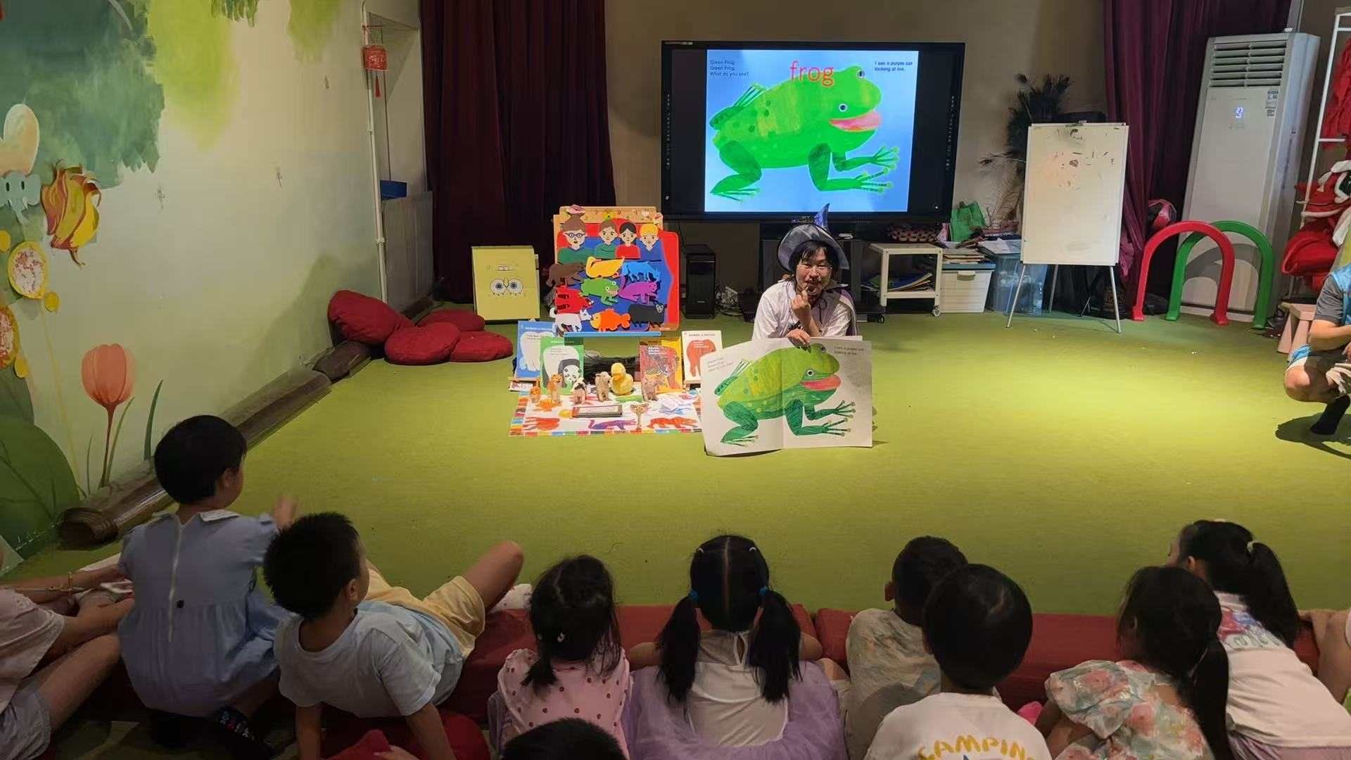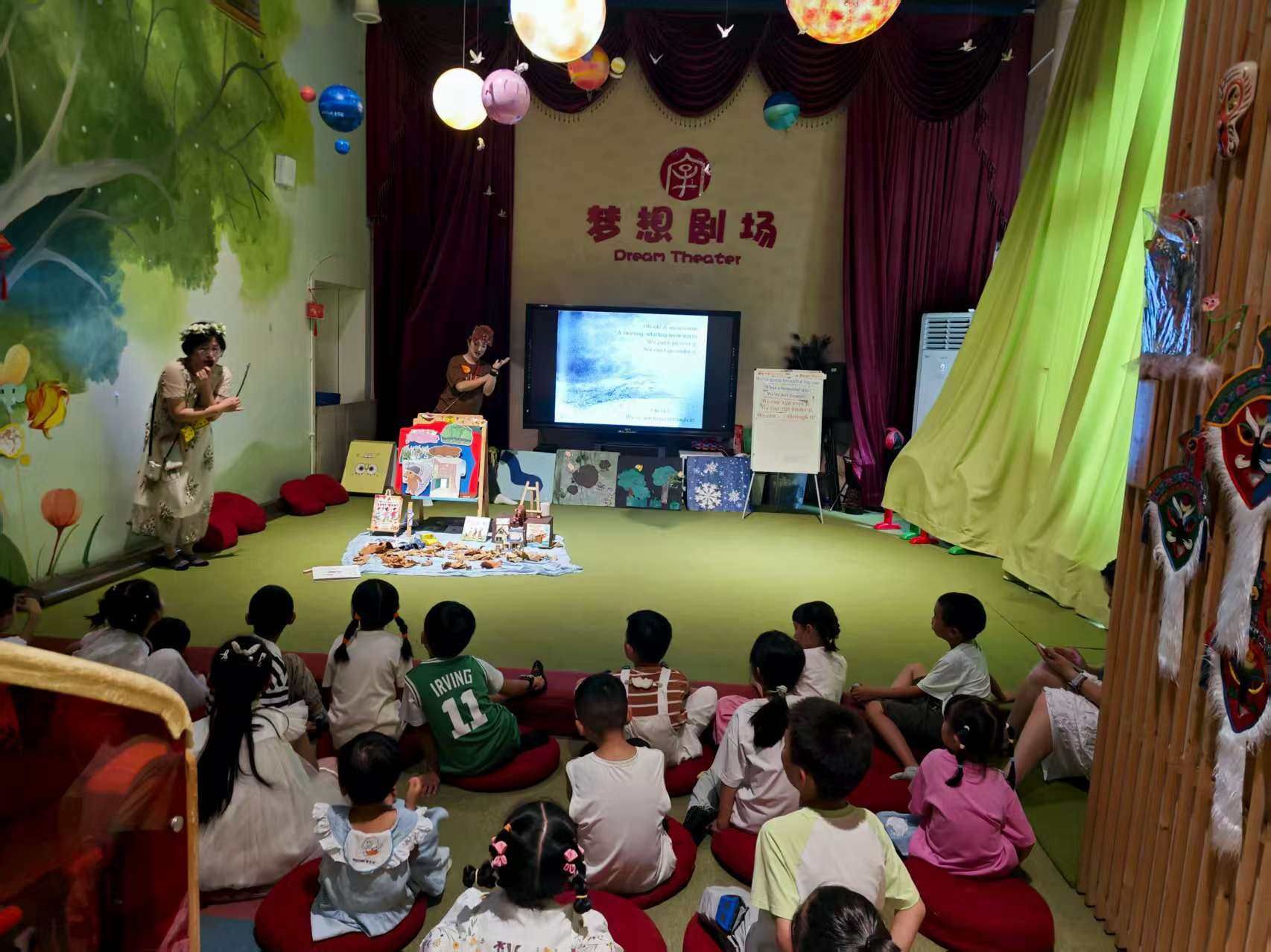 2025年7月至8月,李娟老师受邀在武汉市少年儿童图书馆千字屋组织与开展了三场英文绘本专场志愿服务活动。所有活动内容均源自校级一流课程《少儿英语绘本阅读》的特色教学成果,通过教育戏剧的创新形式,为孩子们打造了多场集语言、艺术与情感教育于一体的沉浸式学习体验。